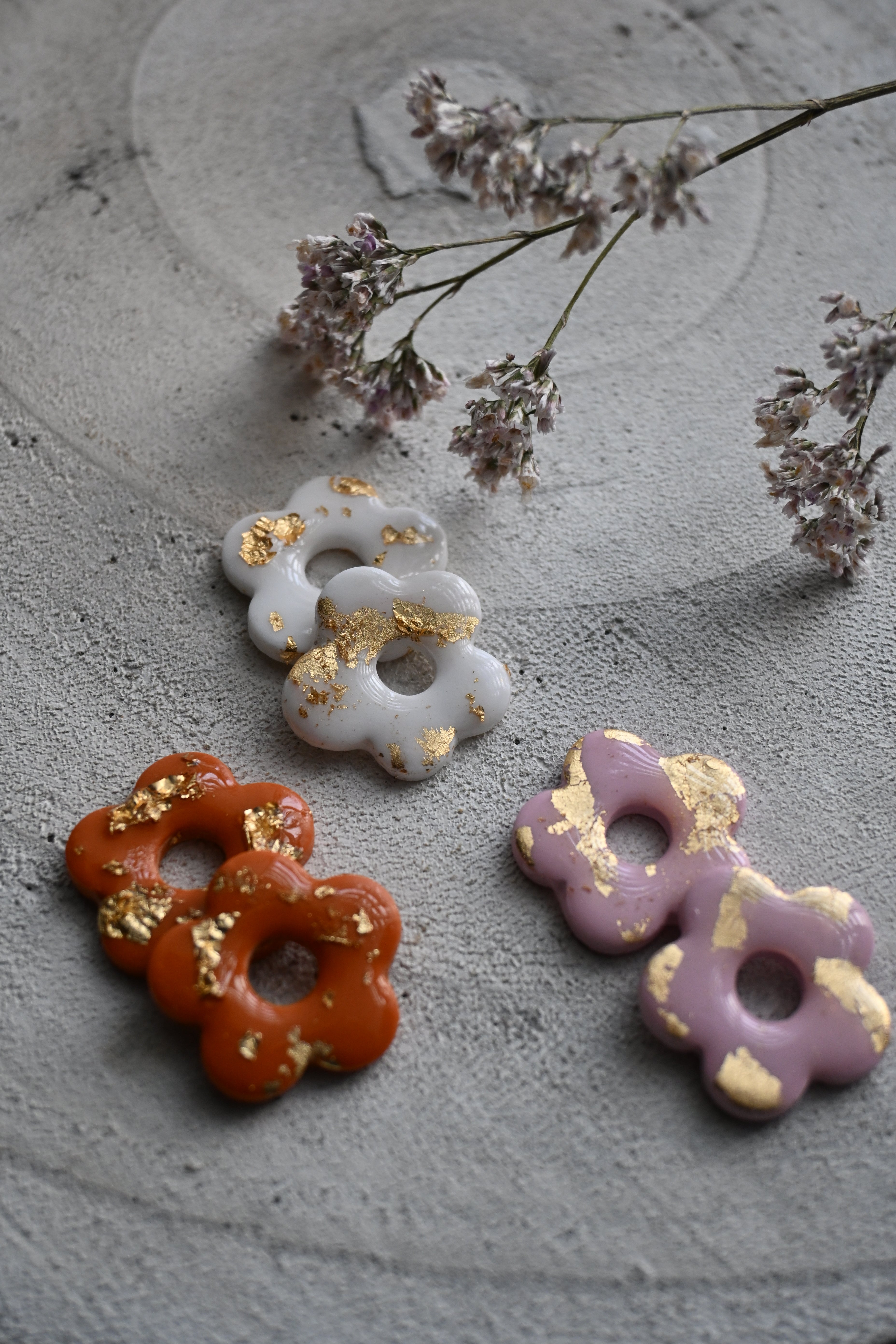 Chaque bijou est entièrement fait main, ce qui signifie que de légères variations de forme, de couleur ou de texture peuvent apparaître d’une pièce à l’autre.